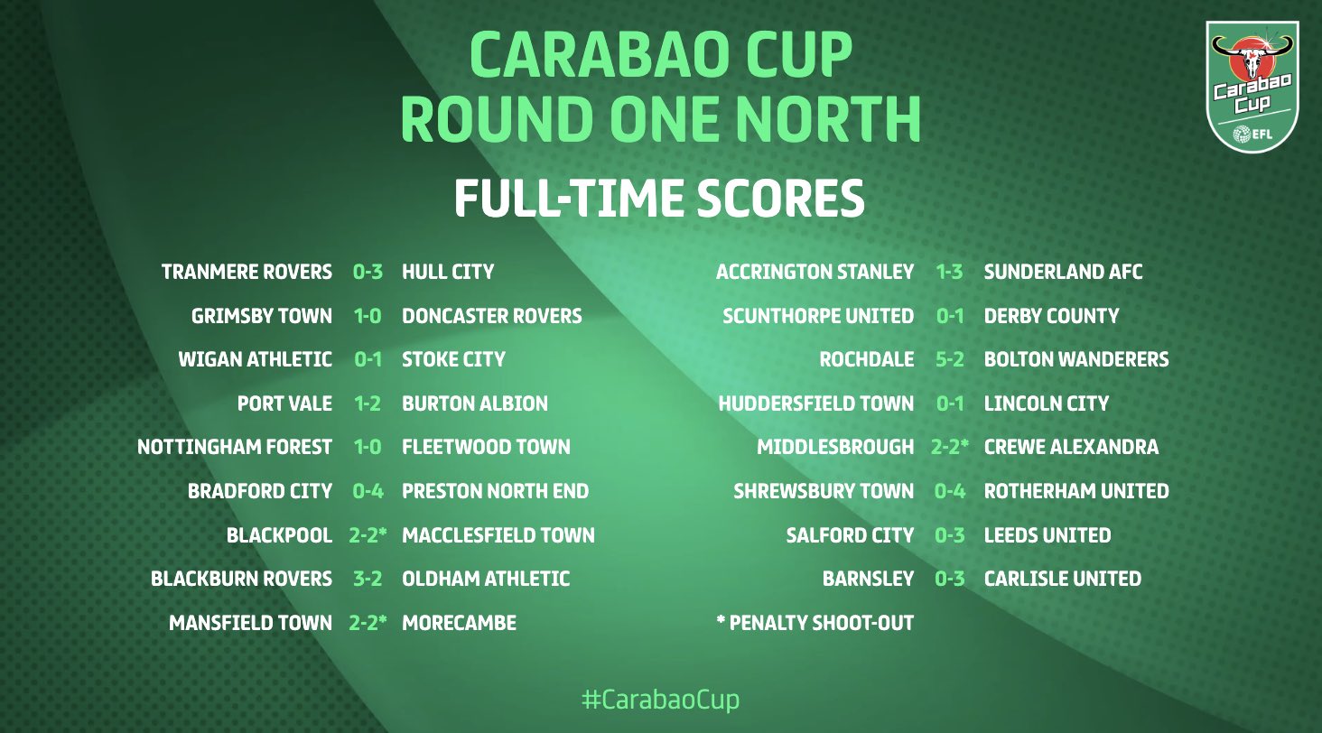 Carabao Cup On Twitter Here Are The Full Time Scores From The Carabao Cup First Round The Draw For The Second Round Comes Next Efl Carabaocup Https T Co P4yk2tqqee Twitter